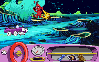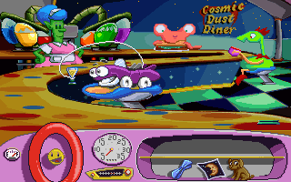 Visually, Putt-Putt Goes to the Moon is a colorful canvas painted with hand-drawn charm. The moon’s surface shimmers in soft pastel grays and purples, dotted with craters that look plucked from a child’s dream journal. Backgrounds are detailed without being cluttered, and every clickable area is subtly highlighted, guiding young eyes toward interactive hotspots without resorting to neon outlines or voice-over prompts.