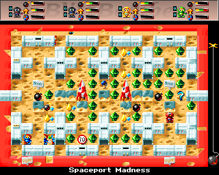 The multiplayer facet shines brightest when more controllers join the fray. BlitzBombers supports the classic four-port adaptor and even a null-modem link, letting up to eight human players duke it out. Lo-res (320×256) visuals switch seamlessly to hi-res (640×256) as the roster expands, ensuring the entire arena stays on-screen without sacrificing clarity. Fast-paced matches, charismatic power-ups and frantic last-man-standing showdowns make BlitzBombers a guaranteed crowd-pleaser.
