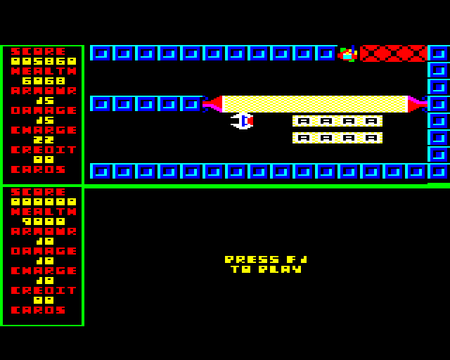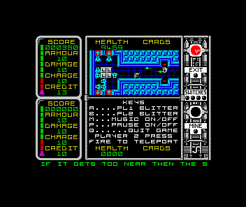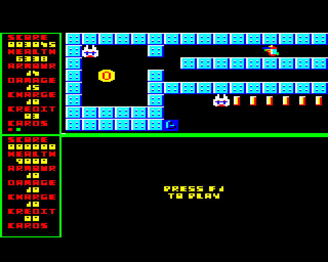 Sprites are crisply defined, and animation frames for Captain Fizz’s laser blasts and alien death throes add satisfying feedback to every encounter. The split-screen mode remains clear and free of visual clutter, with UI elements like health bars and key inventories neatly tucked away at the top of each player’s view. This unobtrusive design keeps the focus squarely on the action below.