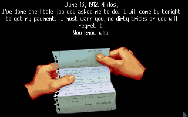 Character animations are impressively fluid for a mid-’90s release; gestures during conversations give each suspect a distinct personality, whether it’s Father Fabiani’s nervous tick or the icy glare of Niklos Karaboudjan’s grieving relatives. Though some edge-smoothing techniques may show their age by today’s standards, the overall aesthetic remains charmingly atmospheric and perfectly suited to the locked-room murder mystery vibe.