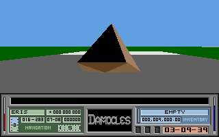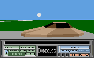 For its era, Damocles stands out with filled-polygon 3D graphics that breathe life into its varied environments. Unlike the wireframe visuals of its predecessor, the world now features solid surfaces, shading effects, and a palette that shifts dramatically from planet to planet. Rolling deserts, frozen tundras, and the eerie void of space each feel distinct.