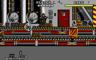 Between bursts of gunfire, your health bar ticks down whenever a terrorist lands a shot. You have three lives per credit, and while med-kits can patch you up, mistakes are punished harshly. A single boss battle at the end of each stage tests your endurance: groups of tougher foes with erratic patterns force you to juggle aggressive offense with strategic use of grenades and power-ups.