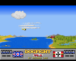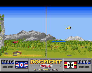 While Dogfight’s visuals draw from the same simple lineage as Atari’s Combat, the AMOS-driven graphics are surprisingly crisp and colorful. Each plane is clearly distinguishable—an English biplane in muted tones versus a striking red Luftwaffe aircraft—ensuring you never lose track of your target amid the scrolling terrain.
