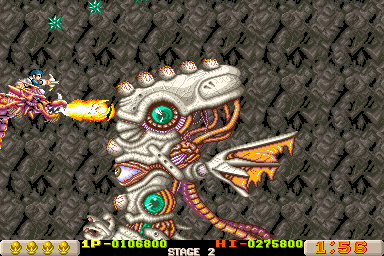 Dragon Breed stands out in the crowded world of side-scrolling shooters by putting you atop Bahamoot, a fearsome dragon whose indestructible tail doubles as both shield and sword. You control King Kayus as he weaves through six meticulously designed stages, blasting away hordes of adversaries dispatched by the tyrant Zambaquous. The blend of horizontal movement with limited vertical scrolling gives levels a dynamic feel, demanding quick reflexes and strategic positioning to survive.