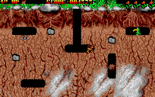 At its heart, Dugger doesn’t aspire to be an epic narrative adventure—it’s a score-chasing arcade romp with a prehistoric twist. You’re simply Herbie Stone, a resourceful caveman on a mission to root out subterranean foes and claim points for his tribe. While there’s no branching plot or cutscenes, the setting and character names (Crunchy, Frugal) give the game a lighthearted, tongue-in-cheek vibe.