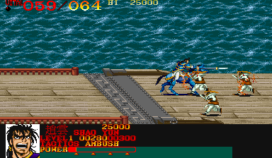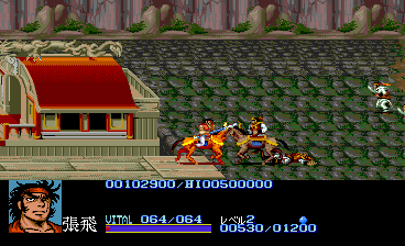 For an arcade title of its era, Dynasty Wars boasts colorful, detailed sprites that capture the intensity of Three Kingdoms warfare. The backgrounds are richly painted—rolling plains, rugged mountain passes, and fortified encampments—providing a sense of scale as your cavalry charges through each stage. Despite hardware limitations, enemy designs remain distinct, allowing you to quickly identify archers, spearmen, and mounted foes amid the chaos.