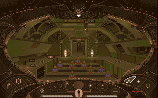 The pseudo-3D environments are rendered with surprising clarity, giving each dome a dungeon-like feel reminiscent of classic exploration games. Corridors curve seamlessly in three dimensions, and dynamic lighting casts realistic shadows that heighten tension as you navigate underground catacombs or open hangars. Reflections on your zeppelin’s hull and particle effects from energy beams add polish to every encounter.