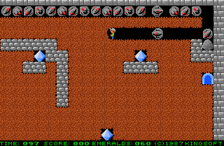 Visually, Emerald Mine captures the nostalgic pixel-art charm of the original Boulder Dash while adding subtle modern touches. The character sprites are crisp and expressive—your little miner bounces with delightful animation when walking, digging, or taking damage. Enemies scuttle and slither in smooth frames, giving them enough personality to make each encounter memorable.