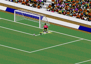 Graphically, FIFA International Soccer stood out in an era dominated by simpler sprites and flat stadium backdrops. The isometric engine rendered the pitch with a convincing illusion of depth, while player sprites moved smoothly from one end to the other. Stands are filled with pixelated spectators, and even though they lack individual detail, the crowd’s color patterns shift appropriately as the camera moves, lending a sense of atmosphere.