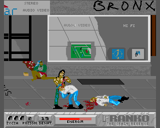 Character sprites are impressively detailed for their era, with Franko’s shaggy hair, torn tank-top and muscular frame rendered in clear, bold lines. Enemy animations vary from clumsy punks stumbling under your blows to disciplined karatekas executing swift, precise strikes. You’ll also notice subtleties like swaying overhead streetlights and flickering neon signs, enriching the atmosphere without distracting from the core action.