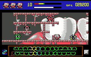 The layered backgrounds add depth to each stage, with occasional parallax scrolling reminding you of the game’s modest but effective 2D engine. Animations are crisp: toothpaste blasts arc realistically, bacteria recoil and splatter convincingly, and Harald’s jump and landing frames feel responsive. Though the art style doesn’t push technical boundaries, its cohesive palette and polished execution give the game a modern-retro charm.