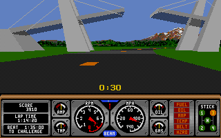 Home conversions of Hard Drivin’ manage to preserve much of this graphical fidelity, though they naturally run on less powerful hardware. Frame rates can dip during intense sequences, and certain visual effects—like the arcade cabinet’s force-feedback rumble—are notably absent. Still, the core polygonal visuals remain intact, offering a faithful representation of the original arcade vision for players at home.