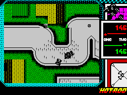 Hot Rod delivers a tight, top-down racing experience that immediately recalls the frantic pace of Super Sprint. You control one of three miniature cars as they weave through a variety of single-section tracks, relying on precise rotation, measured acceleration, and timely braking to shave off precious seconds. Fuel management adds an extra layer of strategy: you start each run with a finite supply and must drive over fuel canisters scattered around the course to stay in the race. Misjudge a turn or clip a hazard, and your car explodes, costing you both time and momentum as it respawns.