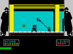 Based on the 1991 comedy-action film, Hudson Hawk’s narrative unfolds through brief cutscenes and onscreen captions that set the stage for each level. You learn that Eddie Hawkins, the world’s greatest cat burglar, has been released from a decade behind bars, intending to retire peacefully. Of course, true to cinematic tradition, his plans go awry when psychotic millionaire yuppies Darwin and Minerva Mayflower coerce him into a series of heists to reassemble a broken crystal capable of turning lead into gold.