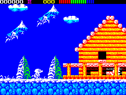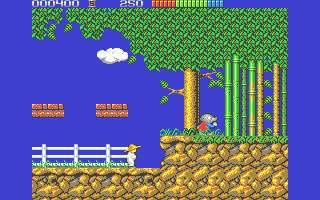 Impossamole’s visuals showcase Core Design’s signature pixel art expertise. Each world is richly detailed with vibrant color palettes that evoke their unique themes—jade roofs and paper lanterns in the Orient, frosted stalactites in the Ice world, and dense, emerald foliage in the Amazon. Background layers scroll at different speeds, creating a subtle parallax effect that lends depth without hindering performance.