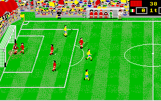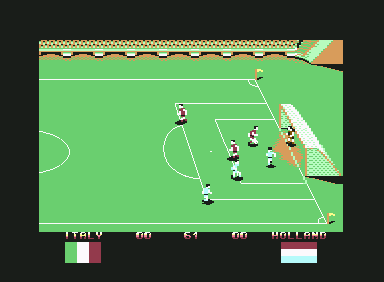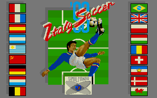 Visually, Italy ’90 Soccer embraces the limitations of late-’80s home computer hardware, delivering pixel art that feels clean and purposeful. Player sprites are small but distinct, with each national kit rendered in clear, contrasting colors that help you pick out teammates and opponents at a glance. The side-scroll field scrolls smoothly in most cases, though rapid directional changes can sometimes introduce minor flicker on lower-powered machines.