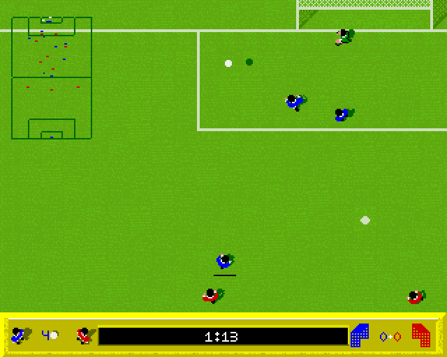 For its era, Kick Off’s graphics are crisp and functional, making the most of limited hardware capabilities. The top-down perspective offers a clear bird’s-eye view of the action, allowing you to survey player movements, anticipate passing lanes, and exploit spaces in the defense with ease. Every sprite is rendered with clean lines and a minimal palette, ensuring that players remain distinct even in crowded areas.