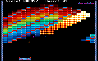 Power-ups add another layer of depth. Dropped from specific bricks, these icons include enlarging the paddle, equipping dual laser cannons, or even skipping a particularly fiendish level. However, they come with a catch: the dreaded “kill player” icon can shrink your paddle to a nearly unmanageable sliver or reset your progress entirely. This high-stakes gamble keeps you constantly on your toes, turning each paddle catch into a tense decision.