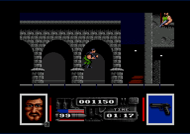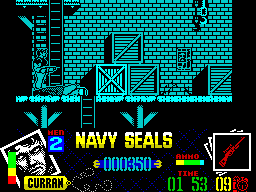 On the downside, some environmental elements can blend together in the heat of battle, making it tricky to distinguish climbable ladders or interactive doors from the scenery. The overall palette leans toward browns and greens, lending an authentic military vibe but at the cost of occasional visual monotony. Still, for a licensed title of its era, Navy Seals delivers polished and purposeful pixel art.