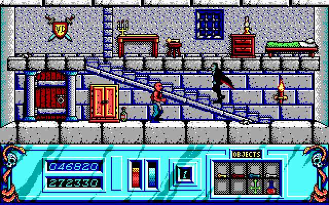 Night Hunter delivers a classic side-scrolling platformer experience with a unique twist: you play as Count Dracula himself. The game’s core loop revolves around exploring each level’s 20 screens, locating three parchments and five keys to open the gate to the next stage. Along the way, you must avoid or dispatch priests armed with holy water, swarms of vultures, and even patrols of modern police officers. The tension rises as you juggle collecting items, evading sunlight, and staying one step ahead of Van Helsing’s hunters.