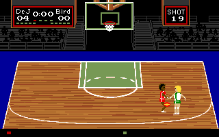 One-on-One puts you in direct control of basketball legends Julius Erving or Larry Bird, set against a minimalist single-basket court. From the moment tip-off occurs, the focus remains squarely on tight, one-on-one combat—no teammates, no whistles, just pure head-to-head action. You choose whether to play to a target score or race against the clock, letting you tailor each match for quick bursts of competition or extended sessions of strategic play.