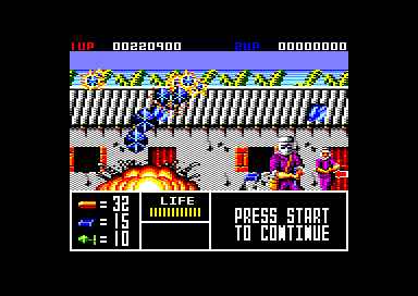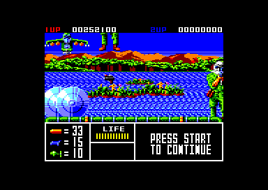 While 16-bit hardware limits the resolution and color depth, the developers have squeezed every ounce of performance out of the system. Frame rates remain smooth throughout most missions, though a slight slowdown can occur when multiple explosions or enemy sprites appear simultaneously. Overall, the graphics reinforce the game’s relentless pacing and help immerse players in high-stakes rescue scenarios.