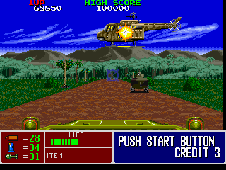 Operation Thunderbolt builds upon the mechanics established in its predecessor, Operation Wolf, by introducing a wider variety of mission types and cooperative play. Instead of a single path through hostile territory, you’ll find yourself behind the wheel of a jeep, navigating treacherous waterways in a motorboat, and engaging in frantic on-foot gunfights. This variety keeps the gameplay fresh across all eight missions, ensuring that each level feels distinct from the last.