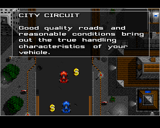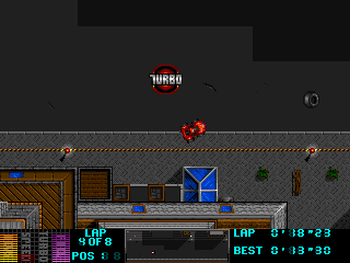 Vehicle sprites are distinct and detailed, making it easy to spot an opponent’s car type at a glance. Subtle visual flourishes, such as exhaust plumes and suspension bounce, reinforce each car’s character. While the top-down perspective limits the depth of environmental geometry, Overdrive maximizes what it has, offering layered backgrounds that lend a surprising sense of scale to each track.
