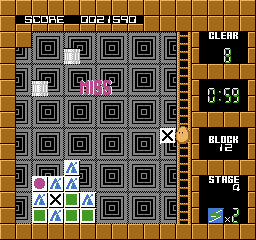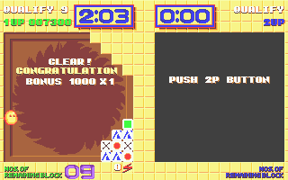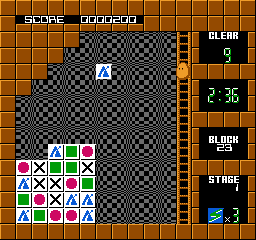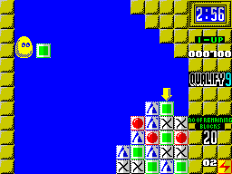 Visually, Plotting embraces the vibrant palette characteristic of late-’80s arcade titles. Blocks come in bold primary hues—reds, blues, greens and yellows—each marked with a simple geometric symbol. This clear visual language ensures that you can quickly identify target blocks, even in the heat of a frantic match.