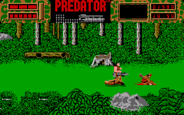 Predator’s narrative departs significantly from the film’s plot. You take on the role of a lone commando whose teammates have mysteriously perished before the game begins. From the outset, you’re thrown into a hostile jungle environment filled with scorpions, enemy soldiers, and deadly traps. The game offers minimal exposition, relying on brief text screens between levels to fill in the gaps: you’re hunting—or being hunted by—the ultimate alien warrior.