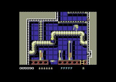 Controls are exceptionally intuitive, which is crucial when deadly hazards loom at every turn. Pressing fire + up dispatches enemies with Rick’s laser gun, while fire + down plants one of his six small bombs. Holding fire plus down-left or down-right lets you slide bombs along the ground, a handy tactic for clearing tight corridors or flushing out patrolling robots and nomads. Rick’s ability to climb ladders and crawl through narrow tunnels adds another layer of strategic movement, forcing you to decide when to advance aggressively and when to proceed with stealthy precision.