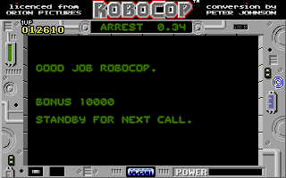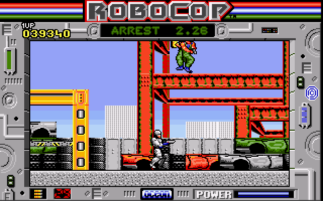 On Amiga and Atari ST hardware, RoboCop’s visual presentation remains faithful to the gritty, neon-lit streets of 1980s Detroit. Character sprites are well-animated, capturing Murphy’s heavy gait in full titanium armor and the erratic movements of street thugs. Backgrounds feature crumbling buildings, flickering streetlights and occasional OCP logos, immersing players in the dystopian cityscape.