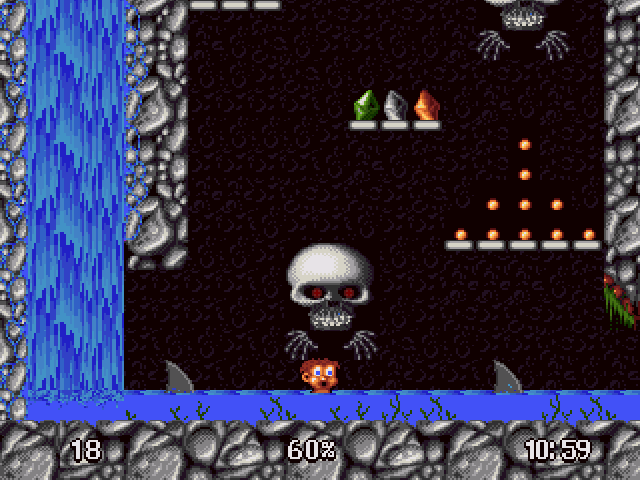 Ruffian delivers a tightly tuned platform-adventure experience stretched across 17 expansive levels. From the very first stage, you’ll find yourself scaling towering cliffs and winding your way through caverns with an emphasis on vertical progression. The multi-directional scrolling keeps each area feeling dynamic, but it’s the constant threat of a misstep—and the ensuing long fall—that truly sets the pace. Much like Rainbow Islands, a single slip can send you tumbling dozens of screens downward, but Ruffian’s longer levels amplify the tension and reward cautious, precise movement.