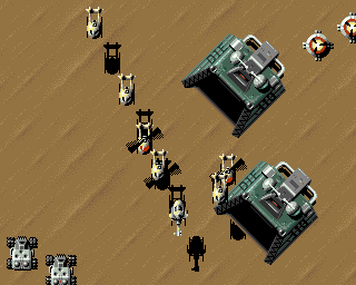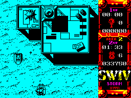 For a game released in the early ’90s home-computer era, S.W.I.V.’s visuals are crisp and colorful. The vertical scrolling backdrop transitions smoothly from dusty desert highways to winding river corridors, each environment sporting distinctive color palettes and obstacles. Sprite work is detailed enough to differentiate multiple enemy types, even amidst the chaos of bullets and explosions. The helicopter’s rotor blades and the jeep’s suspension movement add a surprising level of polish.