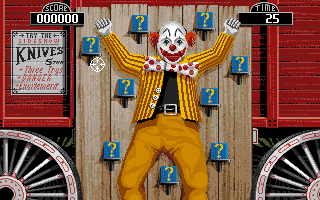 Despite being an early light-gun title, SideShow maintains a steady frame rate, ensuring responsive feedback for every trigger pull. The subtle visual cues, like the glint on a knife or the splash effect in the dunk tank, add depth and make each action feel satisfying. While not photorealistic by today’s standards, the crisp sprites and fluid motion hold up remarkably well for a late-era Commodore Amiga release.