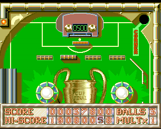 The game unfolds across eight rounds split over three distinct tables, each ramping up the challenge and introducing subtle rule tweaks. Early tables focus purely on soccer elements—defenders, throw-ins, corner kicks—while later stages bring in bright casino accents and gambling motifs on the Amiga version. While the objectives remain consistent (hit the right sequence of targets to advance), these visual and mechanical shifts inject fresh dynamism into every subsequent level.