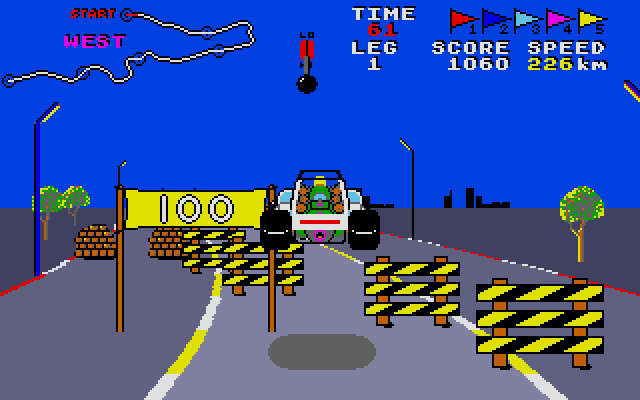 Speed Buggy delivers a high-octane arcade racing experience built around five distinct routes: Offroad, North, East, West, and South. The Offroad course is a tight, looping track that tests your car control in continuous fashion, while the directional courses are lengthy, point-to-point sprints with unique landscapes and escalating difficulty. Each leg must be completed before the timer hits zero, adding a constant sense of urgency and excitement to every second spent behind the wheel.