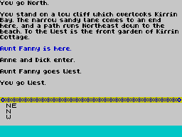 The Famous Five: Five on a Treasure Island embraces the pure spirit of interactive fiction, relying entirely on a keyboard-driven interface to guide you through jolly escapades. Rather than clicking icons or navigating menus with a mouse, you type commands such as EXAMine, TAKE, TALK, and even ATTACK, which lends a nostalgic challenge for those accustomed to modern point-and-click adventures. This old-school approach demands precision and thought: you’ll quickly learn that the right verb paired with the right noun can reveal hidden clues, unlock secret pathways, or trigger witty dialogue with Aunt Fanny and the rest of the gang.