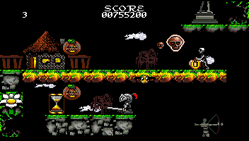 Much like Ghosts ’N Goblins, hit detection is unforgiving. A single hit strips Agravain of his armor, leaving him in nothing but his undergarments, and a subsequent blow means instant death. This high-risk mechanic adds a thrilling tension to every skirmish, but it can also feel punishing for newcomers. Fortunately, power-ups such as crosses that paralyze enemies and stars that grant temporary invincibility can turn the tide—if you can reach them.