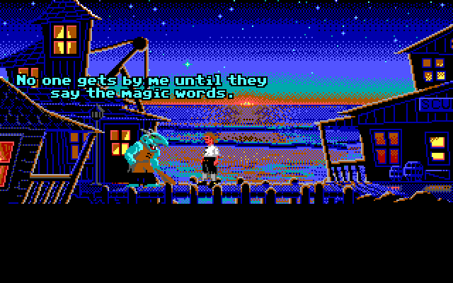 Despite being a demo, there’s no noticeable downgrade in art quality. Colors are vibrant and well-balanced, ensuring that interactive objects and characters stand out against the scenery. Even small touches—like the ripple effect in the water or the flicker of torchlight—add to the world’s immersive feel, demonstrating why Lucasfilm Games set a high bar for adventure graphics in the early ’90s.