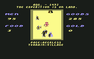 The interface itself is clean and functional, with clear text menus for issuing orders, viewing inventories, and monitoring crew morale. When you enter one of the arcade sequences, the screen shifts to a more vibrant display, underscoring the tense negotiations with native tribes. These graphical transitions help break up the map‐based gameplay and add variety to each play session.