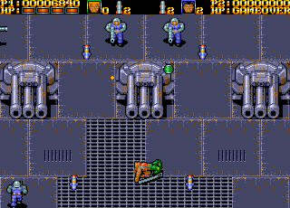 The user interface is minimal but functional, displaying health, ammo, and lives without cluttering the screen. Weapon indicators are intuitive—just look for the “W” icon markers to know when a superior weapon is available. Map elements and level transitions are handled seamlessly, ensuring you stay immersed in the firefight rather than fumbling with on-screen prompts.