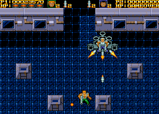 War Zone delivers pure run-and-gun action from a top-down perspective, placing you in control of a heavily armed, Arnold-style soldier across eight distinct missions. From the very first jungle skirmish to the final showdown with the main boss, the gameplay loop is straightforward: move, shoot, avoid enemy fire, and progress toward mission objectives. The core mechanics revolve around basic machine-gun fire, but the real excitement comes from weapon pickups scattered throughout each level.
