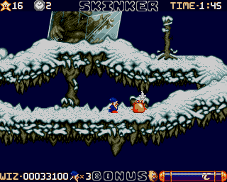 Wiz ’n’ Liz unfolds as a vibrant action platformer where pacing and precision go hand in hand. Players control either Wiz or Liz, two young magicians entrusted with reuniting scattered “wabbits” across the planet Pum. Each stage challenges you to collect a predetermined number of these rabbit-like creatures before the clock runs out, creating a delightful blend of exploration and time management. The simple objective belies a cleverly designed system that keeps you on your toes from start to finish.