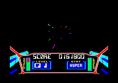 The first-person cockpit view immerses you directly in the action, with wireframe enemies and obstacles zipping around you at breakneck speed. Missile locks, shield management, and energy reserves all factor into your survival, and learning the timing for evasive rolls and barrel maneuvers becomes crucial as the Outsiders deploy more sophisticated fighters on higher levels. The controls are straightforward—throttle up, target, fire—but mastering them under pressure is what gives 3D Starstrike its bite.
