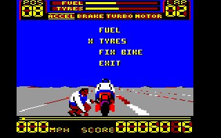 Frame rate and responsiveness remain consistent even when multiple bikes crowd the screen. Occasional sprite flicker is kept to a minimum, ensuring that split-second decisions—like braking into a hairpin or dodging a slower rider—aren’t hampered by graphical stalls. In sum, the visual package may not rival later-generation racers, but for an 8-bit release it strikes a fine balance between style, clarity, and performance.