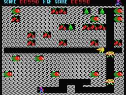 Fruity Frank delivers a classic arcade challenge by placing you in control of Frank himself as he scours each screen for juicy cherries. You’ll guide Frank through a grid-like playfield, digging tunnels or navigating platforms to reach every piece of fruit while avoiding a host of colorful adversaries. The objective is simple: harvest all cherries, clear the level, and move on to an even more demanding stage.