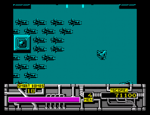 Smart bombs are another resource you’ll constantly manage. Your stockpile of 16 bombs may look generous at first, but tough mid-level waves and aggressive bosses can quickly deplete your arsenal. Timing a smart bomb right before a boss’s heavy attack or a gauntlet of turrets can turn the tide, but using them too liberally leaves you vulnerable when you need them most.