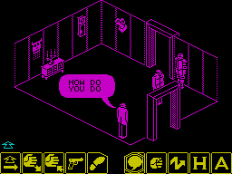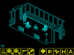Interacting with the world relies on a robust main command menu accessed by pressing the fire button. Here, you can pick up or drop objects, draw your pistol, and engage in conversation with other characters. An inventory limit of three items forces you to make strategic decisions: do you carry extra ammo, a health tonic, or a mysterious key found in a dusty corner? A dedicated swap command lets you quickly toggle between your possessions, which proves essential during gunfights or when time is of the essence.