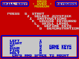 For its era, Raid over Moscow offers surprisingly crisp and colorful visuals, especially on platforms like the Commodore 64 and ZX Spectrum. The opening missile sequence is rendered with bold lines and bright flashes, instantly conveying the explosive stakes of your mission. Sprite animations are simple but effective, with fighter planes and enemy units easily distinguishable against vibrant backdrops.